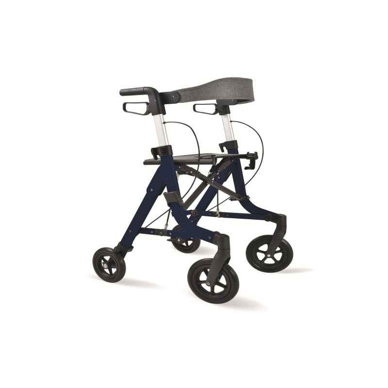 Tiene una estructura estable y rígida. Su diseño único permite, simplemente levantado el asiento, doblarlo no sólo en anchura, sino también en profundidad, acercando las ruedas traseras a las delanteras, ahorrando así mucho espacio. Equipado con un soporte de bastón plegable y un fácil ajuste de la altura del asa por indexación. 2 tamaños M o L