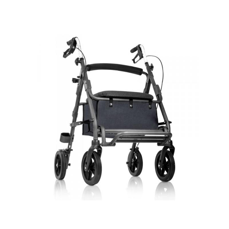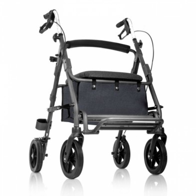 El andador con reposapiés A41009F es ideal para personas con movilidad reducida, que necesiten detenerse a descansar después de caminar algunos metros. Incorpora un cómodo asiento de 35 cm de ancho y 34 cm de profundidad, gracias a los reposapiés permite que el usuario sea empujado por el acompañante. Este andador tiene una cesta de ropa opaca bajo el asiento y frenos maneta con posición parking. Trae el porta bastón de serie.