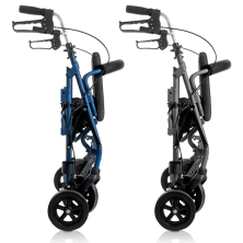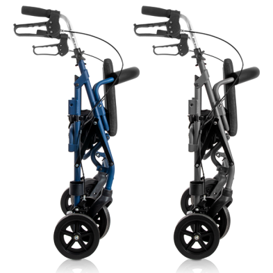 El andador A41009F cuenta con un reposapiés que le permite transformarse en una silla de ruedas con facilidad. Simplemente cambiando el respaldo de posición, el usuario puede sentarse en el cómodo asiento, apoyar los pies en la plataforma y ser empujado cómodamente por su cuidador.