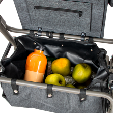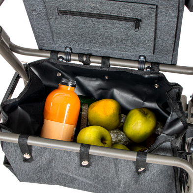 El andador A41009F ofrece un asiento amplio y acolchado de 35 cm de ancho y 34 cm de profundidad, con un espacio útil para sentarse de 45 cm. Además, cuenta con una práctica bolsa integrada para guardar pequeños objetos o documentos.