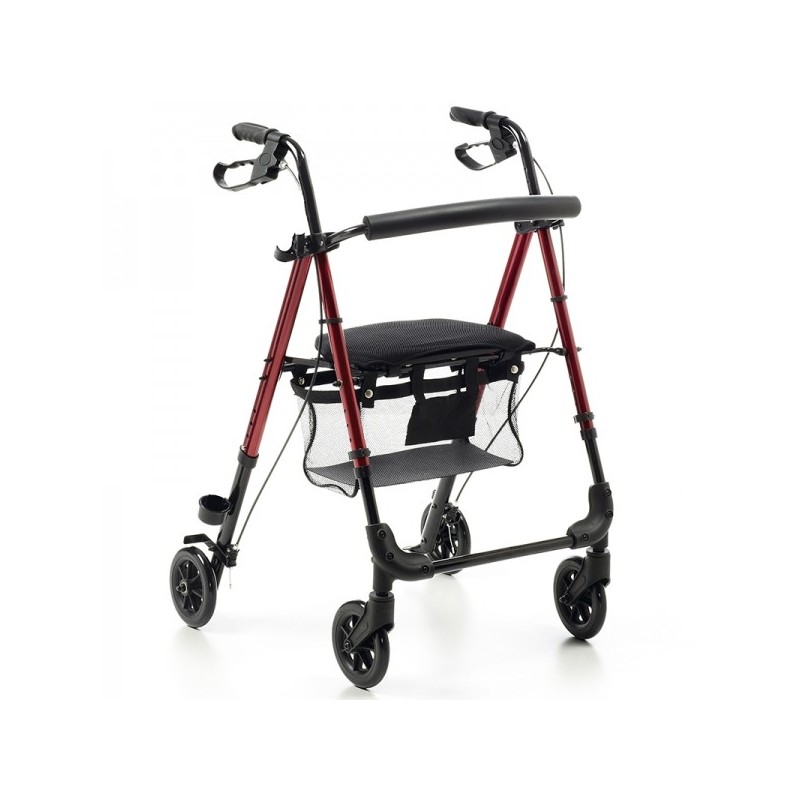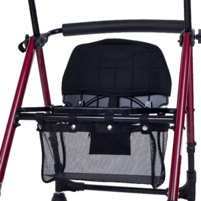 Tiene un asiento, con respaldo, de 34 x 31cm, práctico y útil para personas que, por su condición, se sientan obligadas a detenerse cuando caminan algunos metros. De esta manera, con el andador con asiento, el usuario puede sentarse tranquilamente a descansar. Además, el asiento tiene una cesta cubierta que permite guardar hasta un peso máximo de 8 kg.