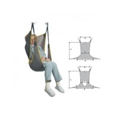 La Eslinga Comfort se coloca mientras el usuario está acostado y durante la transferencia el usuario está sentado. Eslinga Comfort Toilet se caracteriza por tener una abertura en la parte inferior.