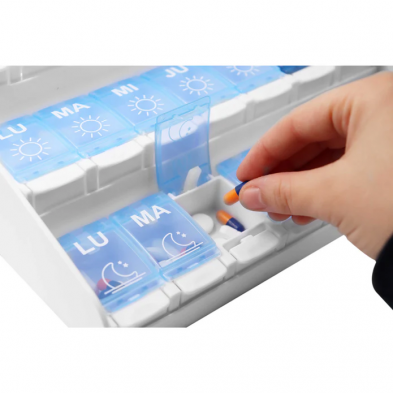 El pastillero semanal de 3 tomas es de dos colores, que diferencian fácilmente los días entre semana de los fines de semana para ofrecer una organización semanal fácil y ordenada.