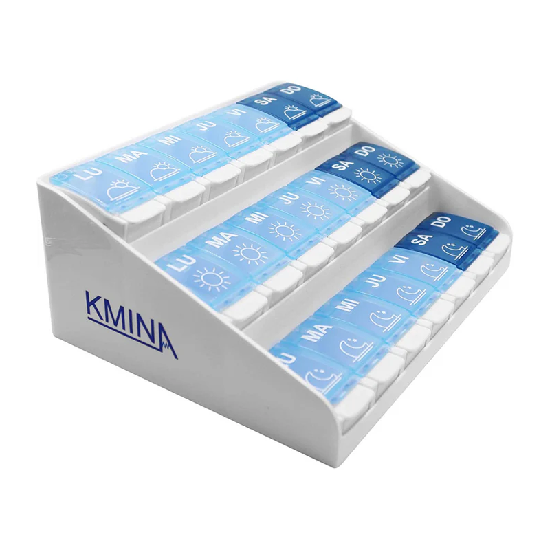 - FUNCIONAL: Pastillero semanal de 7 días para organizar las medicinas y garantizar las tomas diarias, evitando olvidos y equivocaciones. El organizador de pastillas cuenta con 3 pastilleros para cada momento del día (mañana, tarde y noche) que están formados por 7 compartimentos para dividir los días de la semana.