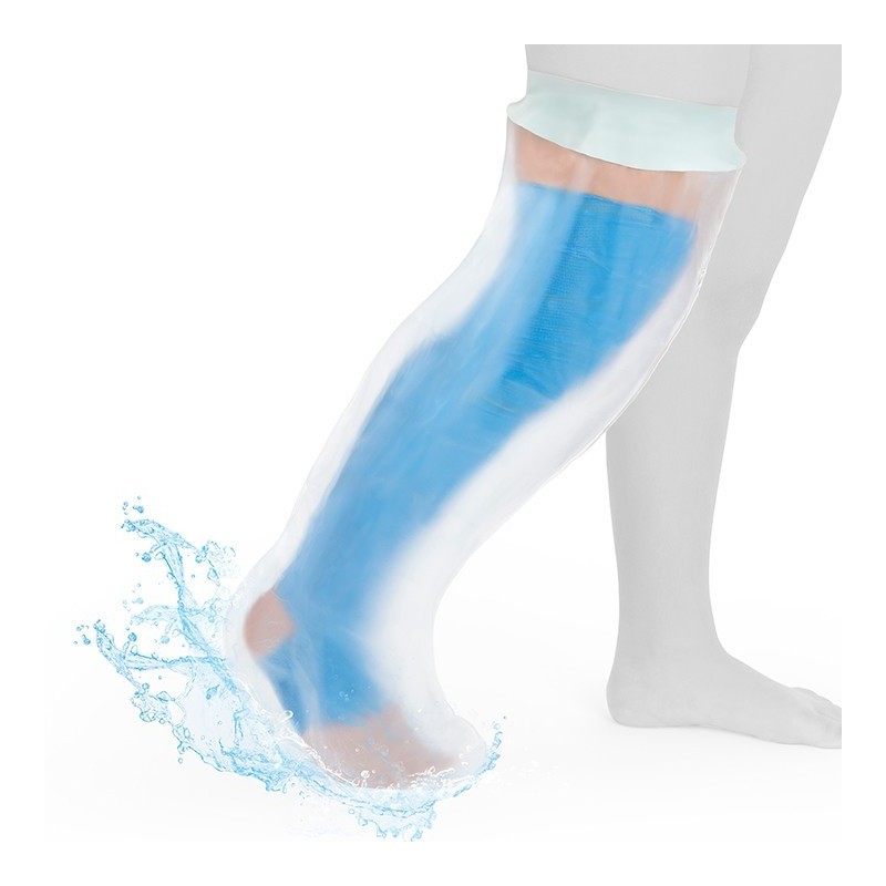 Funda de protección hermética para ortesis y escayolas de miembro inferior para adultos. Fabricado en material impermeable y flexible, facilita el baño o ducha y permite su reutilización.