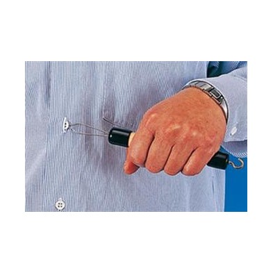 Para abrochar los botones con una sola mano, el gancho ayuda a subir las cremalleras.