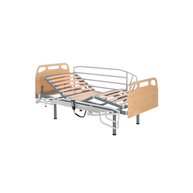 Lecho de 4 planos y 3 articulaciones. Lamas de haya vaporizada recubiertas de papel melamínico de 53x8mm, doble lama con tensores en zona lumbar. Tacos de sujeción de lamas fijos de polietileno.