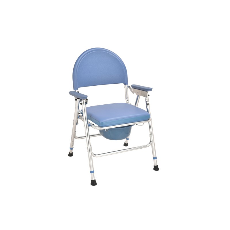 Nuestra silla de inodoro Islandia le permite sentarse cómo- damente. Su sistema de plegado será muy práctico para el almacenamiento de la silla. Con una cubeta extraíble desde la parte superior y hacia la parte delantera. Se suministra con una almohadilla blanda que cubre el asiento perforado (abertura anatómica de 22 x 30 cm).