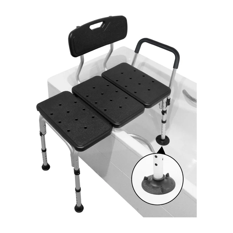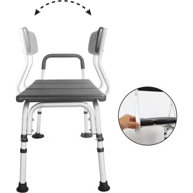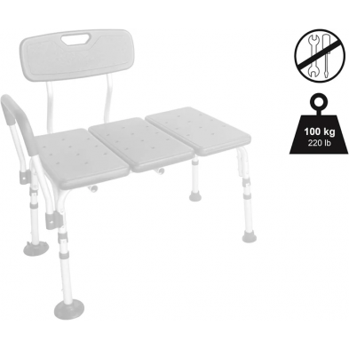 ♥ AJUSTABLE: el montaje de este banco de transferencia no requiere herramientas y gracias a sus 9 regulaciones de altura (de 84 a 94 cm) es adaptable a bañeras de hasta 50 cm. Además, su respaldo reversible se ajusta fácilmente a las necesidades del usuario (Altura al asiento: 50– 60 cm). IMPORTANTE ANTES DE COMPRAR: mide el exterior de tu bañera; debe ser menor o igual a 50 cm. Mide el interior de tu bañera; la diferencia entre la medida exterior e interior no puede ser mayor a 10 cm.