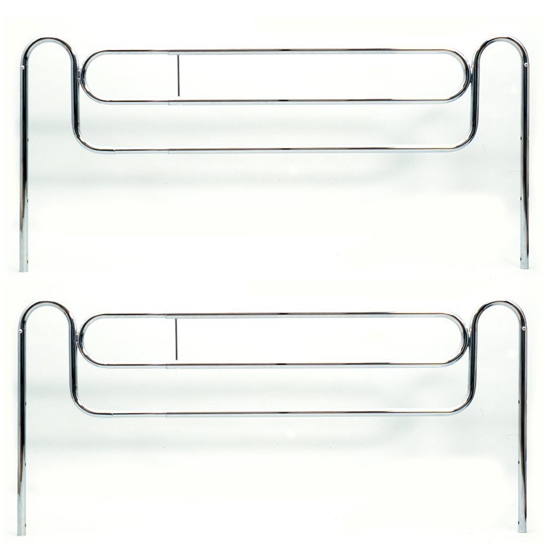 Fabricadas en acero cromado. Se deslizan fácilmente hacia abajo para favorecer el acceso a la cama. Fácil montaje.