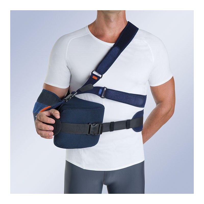 Fabricado en tejido transpirable de panal permite la libre circulación de aire evitando así posibles irritaciones. Su diseño permite ligera abducción de 15° de hombro y rotación externa de 90°. Pelota de ejercicio de mano cuya función es mantener el tono muscular de la mano y mejorar el riego sanguíneo.paciente.