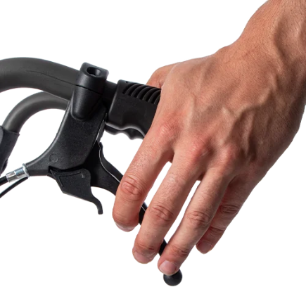 El modelo Saby Lite incorpora de serie un kit de freno de mano que incluye freno de asistencia y freno de bloqueo para mayor seguridad y control.