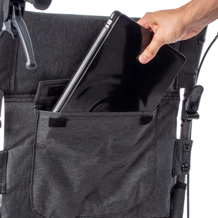 Respaldo abatible que permite un plegado más eficiente de la silla, mejorando su portabilidad y reduciendo su tamaño.